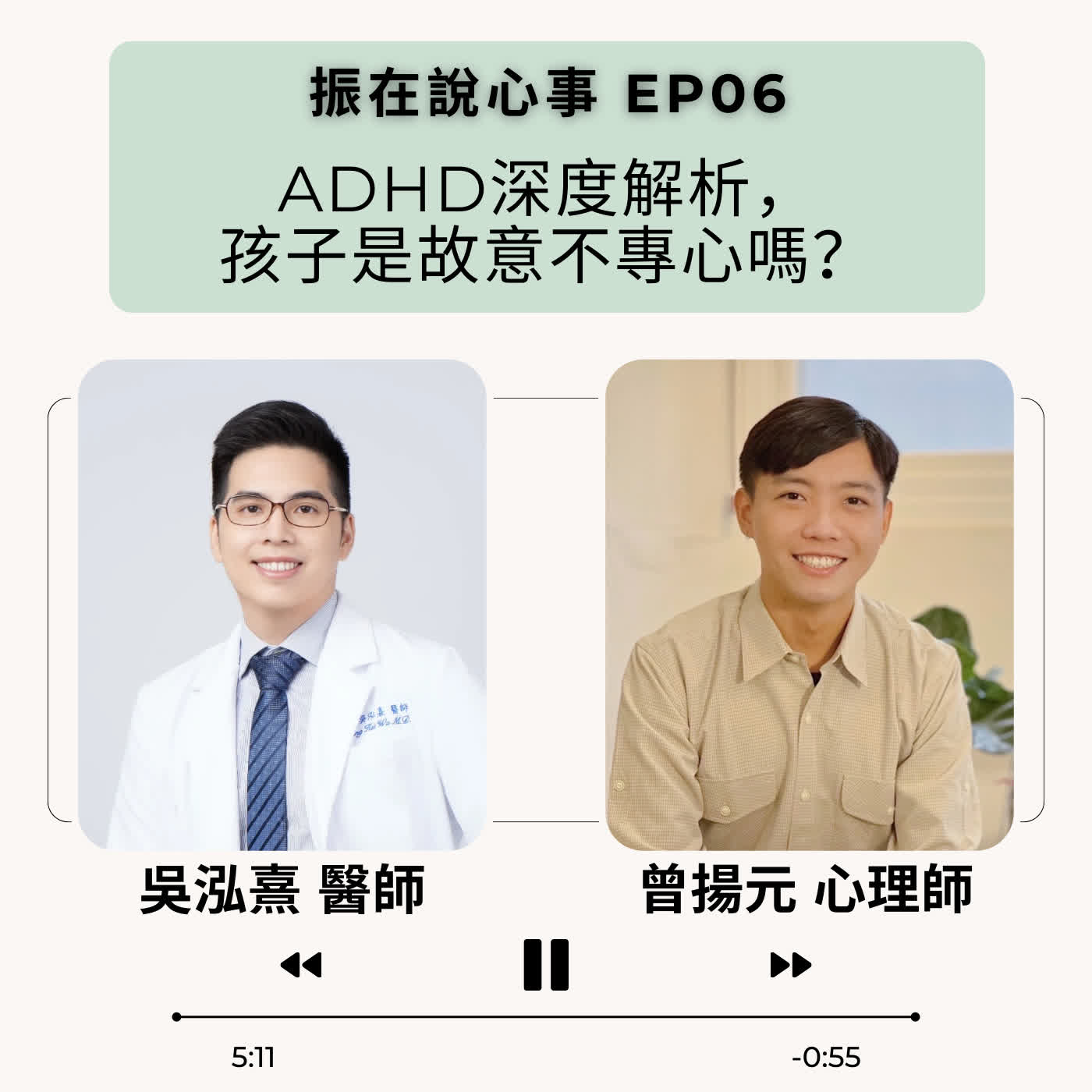 本集節目探討現代家長最關心的議題——ADHD(注意力不足過動症)。由吳泓熹醫師帶領我們從大腦科學的角度出發,釐清 ADHD 絕非教養不當所致,而是先天生理發展的差異。透過專業的醫學觀點,解析藥物與行為介入如何相輔相成,幫助孩子找回生活的主控權與價值感。
